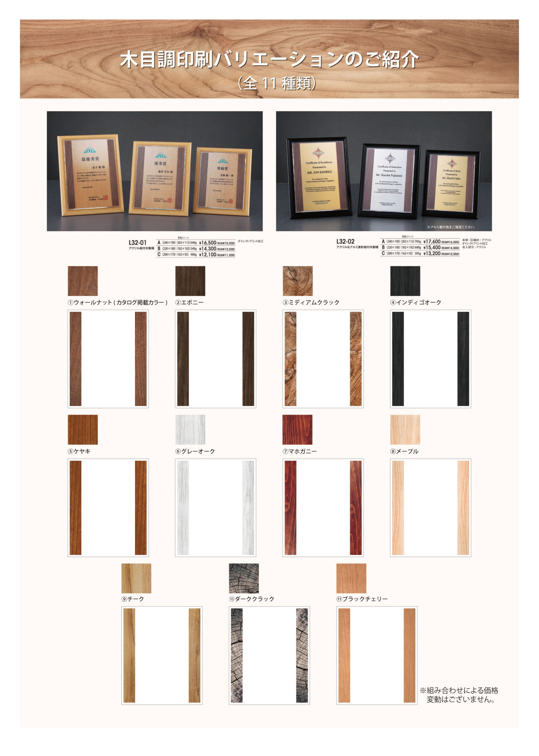 P.332あんしんオーダー L32-01 アクリル板付木製楯 L32-02 アクリル&アルミ表彰板付木製楯