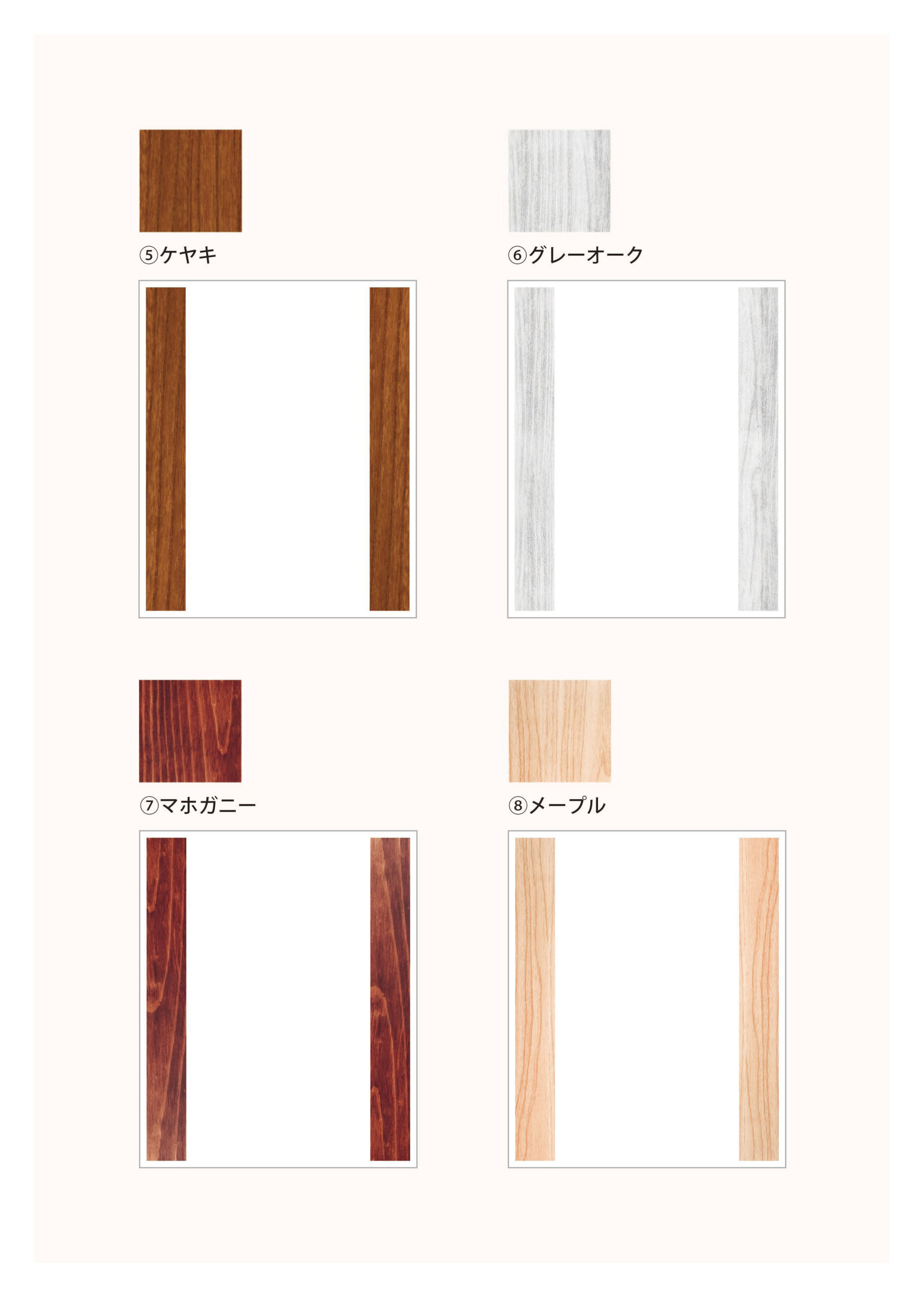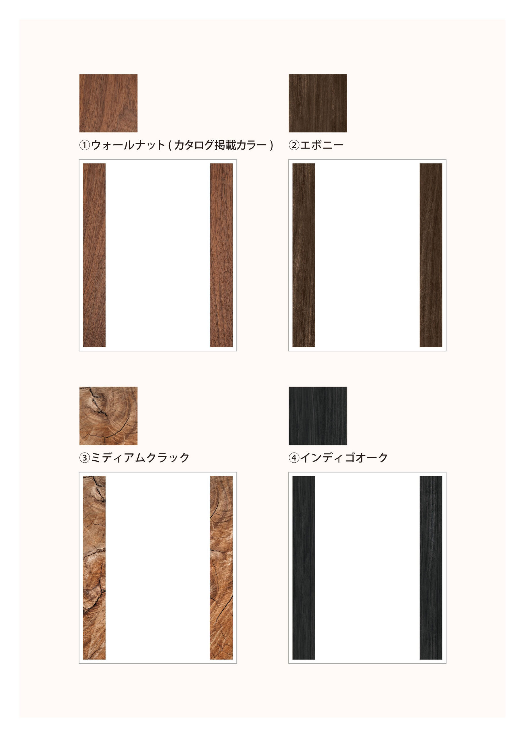 の木目調印刷部のバリエーションを11種作製しました。 ※カタログ掲載品は①ウォールナットとなります。